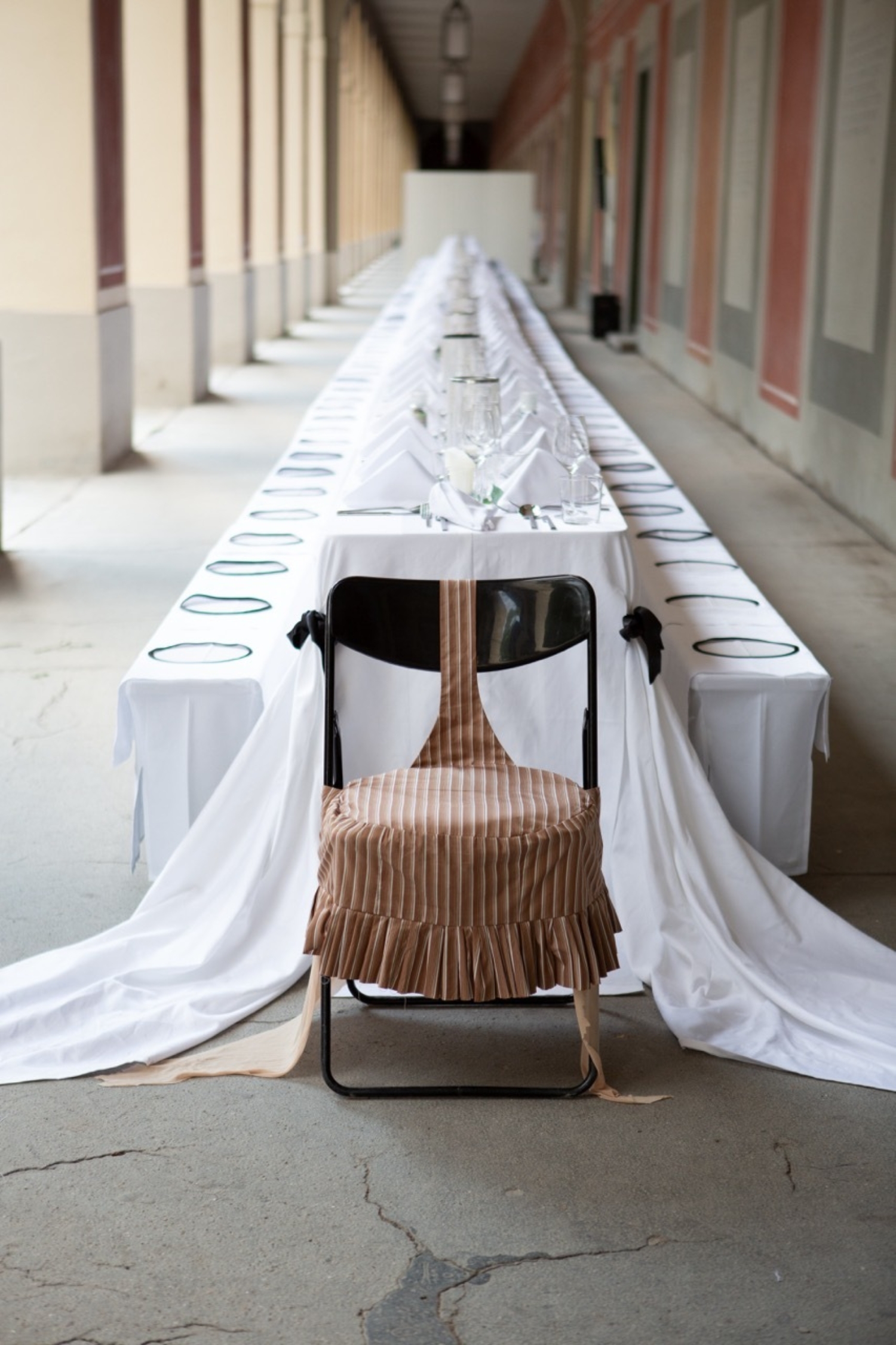 Gabapentin - Nursing Shirt (Business) 2024. Photo: HULFE. Fiona Bate: I’m looking at images of your work for the annual Arkadendinner at the Kunstverein Munich in July – you created the Tischkonzept Relational Bib. In the lead up I remember you were unsure about whether or not guests would interact with the piece as intended. It looked absolutely stunning and people seemed to really love it at the event. Tell us more about the response! And do you find that when people come to engage with your work that they’re quite open to and perhaps (some) in the art world are even missing a more playful spirit?
