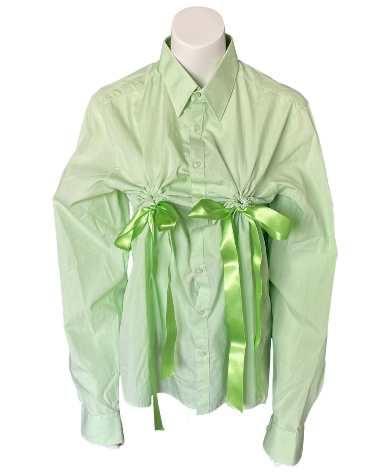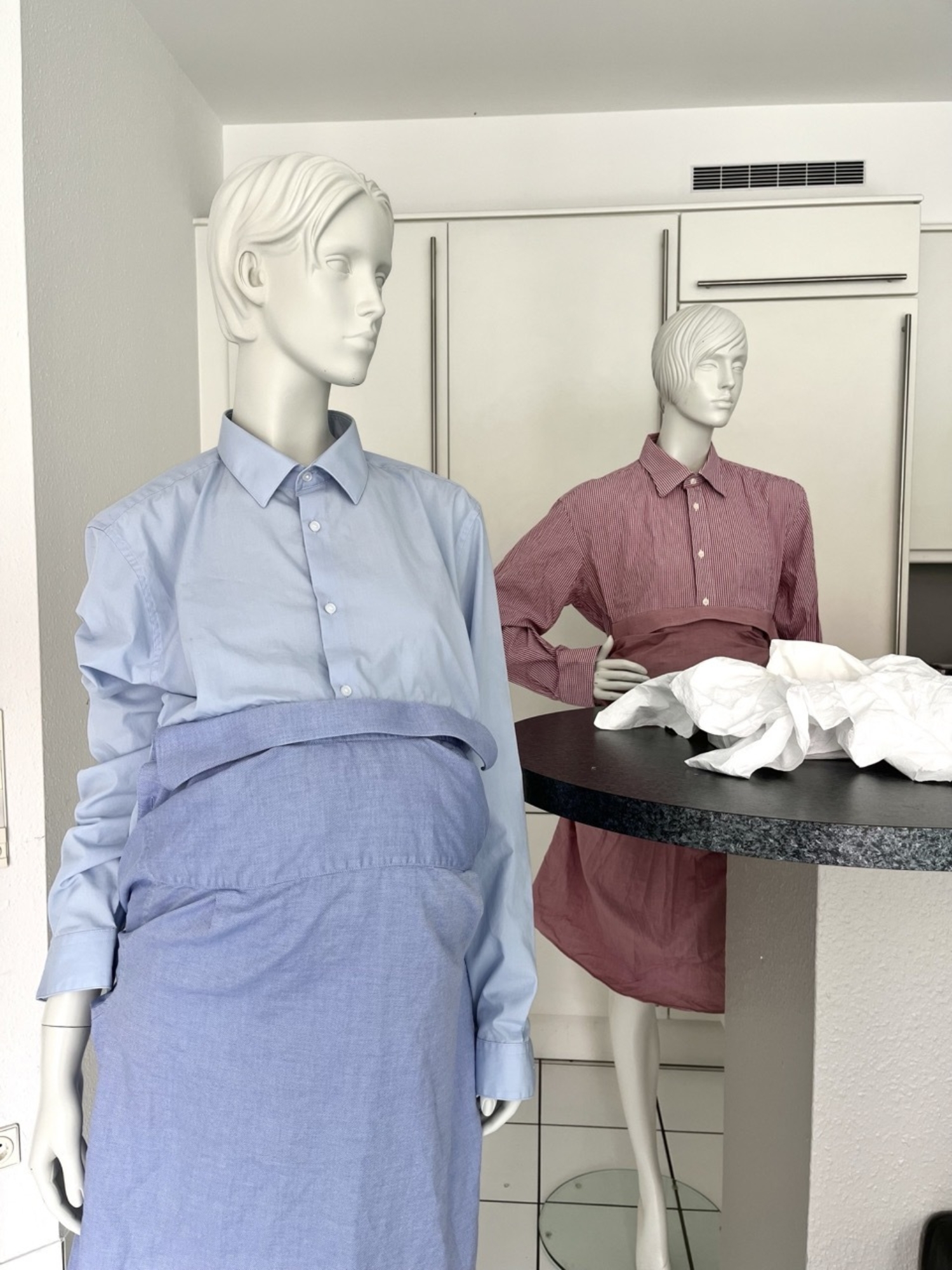 HULFE: I love to be in such great company :) Your associations make me happy. That there is formal similarity to the works you mention is a coincidence. The aim for these pillowcases was to stay as basic as possible so you can use them on your own pillows. Matching a standard 80 × 80 cm pillowcase with a sensory deprivation function served us this wonderful alien shape. The Nursing Shirt wasn’t my firstborn. Looking back the Belly Belt is the first product – an attachable fake belly to imitate 3 stages of human pregnancy. But the Nursing Shirt was right behind in the birth canal. And it is an achiever. The Nursing Shirt was developed when our friend Michele di Menna was pregnant and asked us for a shirt that would allow her to breastfeed and still look fab! We made one with a zipper and one with holes and bows. She liked it and used it so we continued making them in different versions. Soon we found out that there is a great demand for fun nursingwear.
